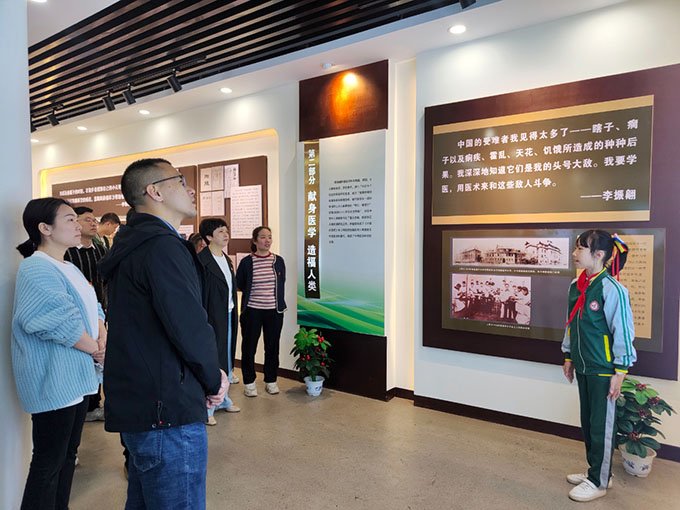 隨后,黨員們跟隨著小小解說員的腳步,參觀了“婁底市愛國主義教育基地”、“湖南省華僑文化交流基地”李振翩愛國主義事跡館。李振翩先生是萬寶鎮(zhèn)石埠村人,是世界著名醫(yī)學(xué)家、病毒學(xué)家、社會(huì)活動(dòng)家,是歷史上一位傳奇人物,一名偉大的科學(xué)家,曾與毛澤東在湖南從事過學(xué)生運(yùn)動(dòng),是中國共產(chǎn)黨的好朋友,是中美建交“密使”。他發(fā)明研制的小兒麻痹癥疫苗為全人類作出了杰出貢獻(xiàn)。通過孩子們的生動(dòng)講解,大家對(duì)李振翩先生奮斗一生所取得的光輝成就和愛國主義事跡有了更深刻的了解,對(duì)振翩先生深感敬佩,同時(shí)對(duì)振翩小學(xué)的辦學(xué)理念表示了充分的認(rèn)可。