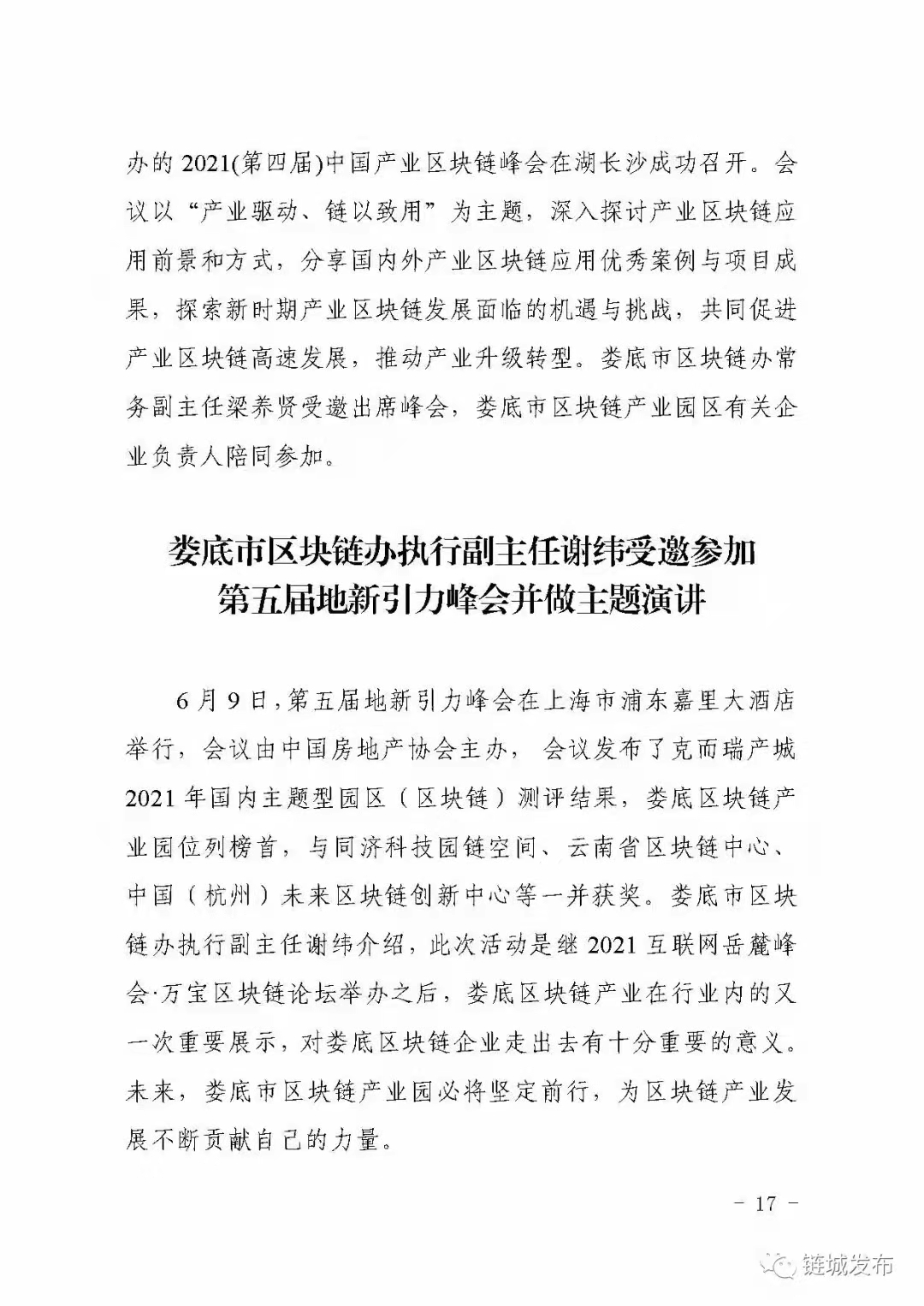 為方便社會(huì)各界更好的了解婁底市區(qū)塊鏈產(chǎn)業(yè)發(fā)展動(dòng)態(tài),婁底市區(qū)塊鏈辦印發(fā)《婁底市區(qū)塊鏈產(chǎn)業(yè)發(fā)展宣傳簡(jiǎn)報(bào)(2021年第2期)》,以下是宣傳簡(jiǎn)報(bào)全部?jī)?nèi)容。